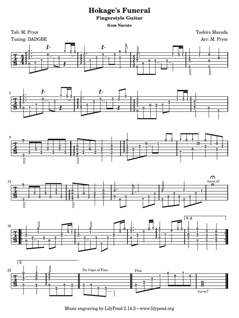 High quality Guitar sheet music and tabs for Hokages Funeral by naruto. So I got him a nice one for XMAS as well as full version of FL so most of his cords and such are actually played by hand which I feel adds something. For instance dad brag he taught himself how to play the piano.